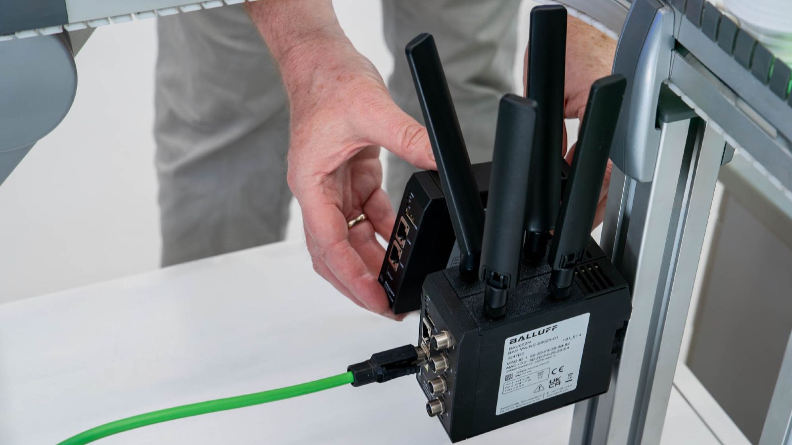 Das Condition Monitoring Toolkit von der Firma Balluff ist ein bereits bestehendes System, das Maschinen- und Umgebungsdaten erfasst, auswertet und überwacht. Es hilft Unternehmen, Abweichungen vom Normalbetrieb sowie den Wartungsbedarf einer Maschine frühzeitig zu erkennen, um dadurch Stillstände zu vermeiden. Die 5G-Technologie ist in der Lage Daten aus der Produktion in Echtzeit und kabellos übertragen zu können - sicher, schnell und mit hoher Zuverlässigkeit. Durch diese Eigenschaften ist unter anderem die Verbindung vieler Maschinen innerhalb von Produktionen möglich. Das Ziel der Forschungspartner bestand darin, CMTK und 5G miteinander zu verbinden und so das bestehende Produkt CMTK zu optimieren. Um dieses Ziel zu erreichen, hat Nokia ein 5G-Campusnetzwerk beim Forschungscampus ARENA2036 als eigenes, privates Mobilfunknetz zur Verfügung gestellt. Außerdem benötigten die Wissenschaftlerinnen und Wissenschaftler bei Balluff eine Plattform, die die Daten verarbeitet, analysiert und für weitere Anwendungen bereitstellt. Das konnte Nokia in Form eines Application Servers ermöglichen. Beide Technologien, sowohl Netzwerk als auch der Application Server, waren dabei bereits am Forschungscampus ARENA2036 vorhanden und konnten genutzt werden, um das CMTK zu optimieren. Um 5G auch anwenden zu können, integrierte Balluff ein entsprechendes Modem in sein bestehendes Produkt CMTK.