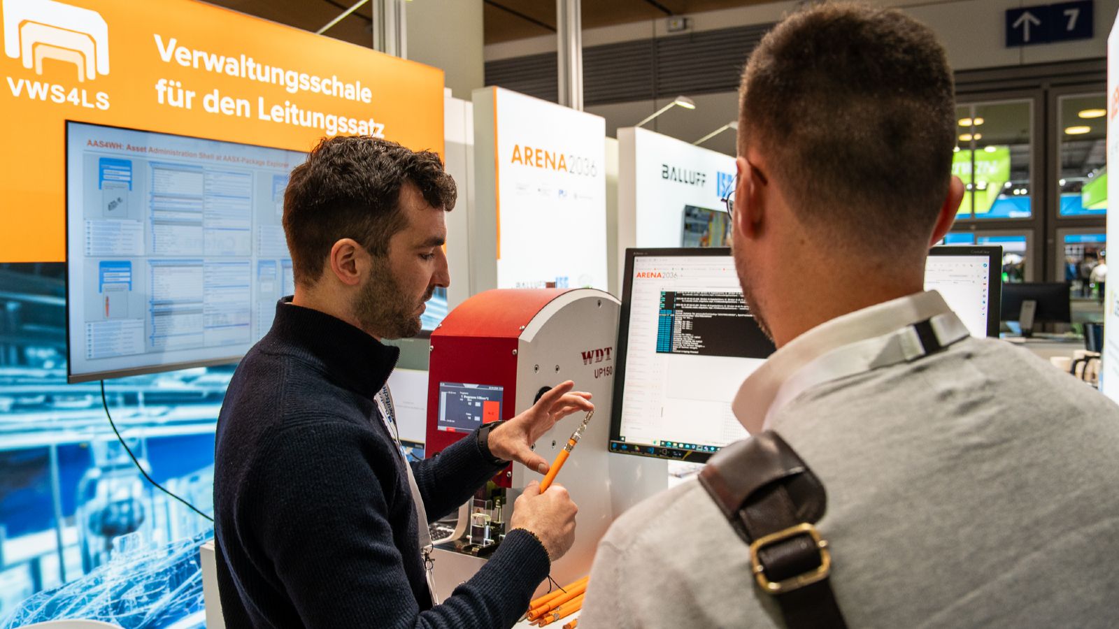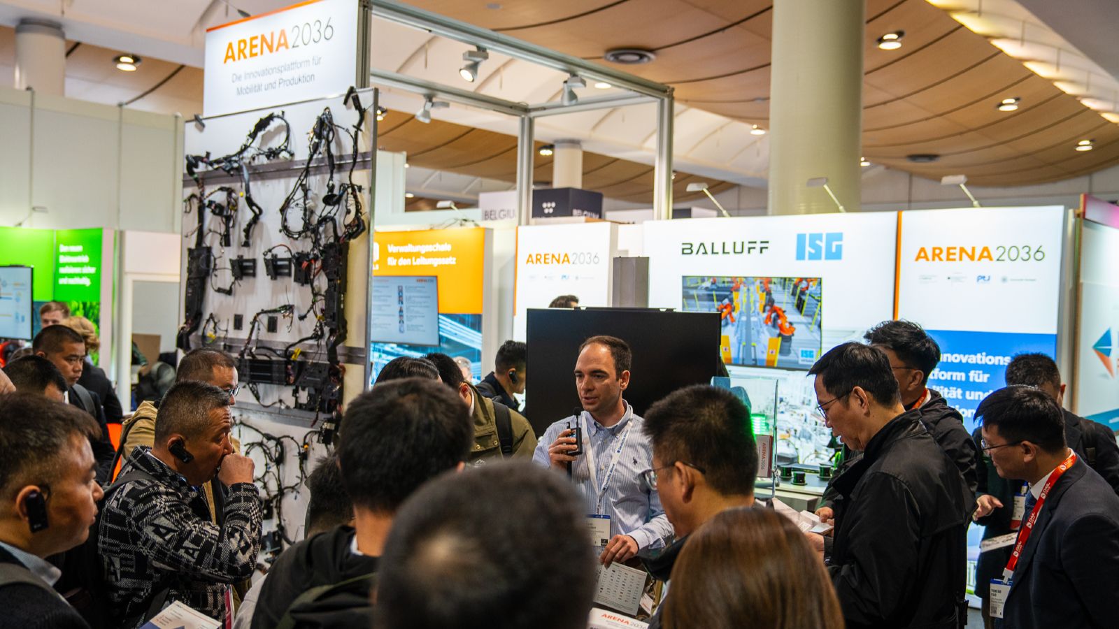 Der Forschungscampus ARENA2036 hat mit seinen Projekten Arena-X, DigiTain, dem Transformations-Hub für den Leitungssatz und der Verwaltungsschale für den Leitungssatz gemeinsam mit seinen Technologiepartnern Balluff und ISG insbesondere in den Bereichen digitale Zwillinge, volldigitale Produktentwicklung und -zertifizierung sowie Datenräume neue Entwicklungen präsentiert.