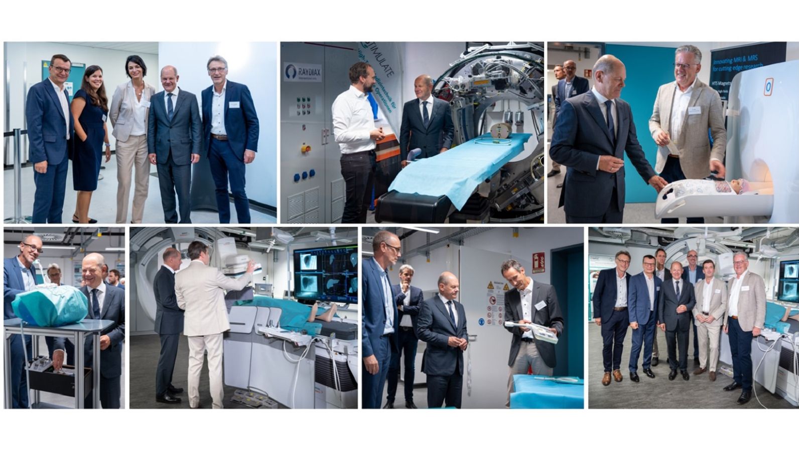Am Forschungscampus STIMULATE erhielt der Bundeskanzler Einblicke in die neuste Medizintechnik bildgeführter Therapien. Darüber hinaus erhielt er Gelegenheit, die Therapiegeräte selbst zu testen. Besonderes Interesse galt auch den Prototypen und Produktentwicklungen der Start-ups Neoscan Solutions und RAYDIAX.
