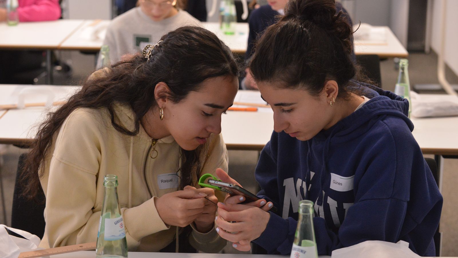 Besonders gut kam ein Experiment mit direktem Alltagsbezug an: Die Schülerinnen verwandelten ihre eigenen Smartphones mithilfe kleiner Vorsatzlinsen in Makrokameras. Damit konnten sie Oberflächen wie Blätter, Stoffe oder Papier stark vergrößert betrachten – und entdeckten Strukturen, die mit bloßem Auge nicht zu erkennen sind. Die Stationen wurden von verschiedenen Partnern des Forschungscamps DPP gestaltet und betreut – darunter das Fraunhofer ILT, das Fraunhofer IPT sowie der Lehrstuhl für Lasertechnik LLT und der Lehrstuhl für Technologie Optischer Systeme der RWTH Aachen.